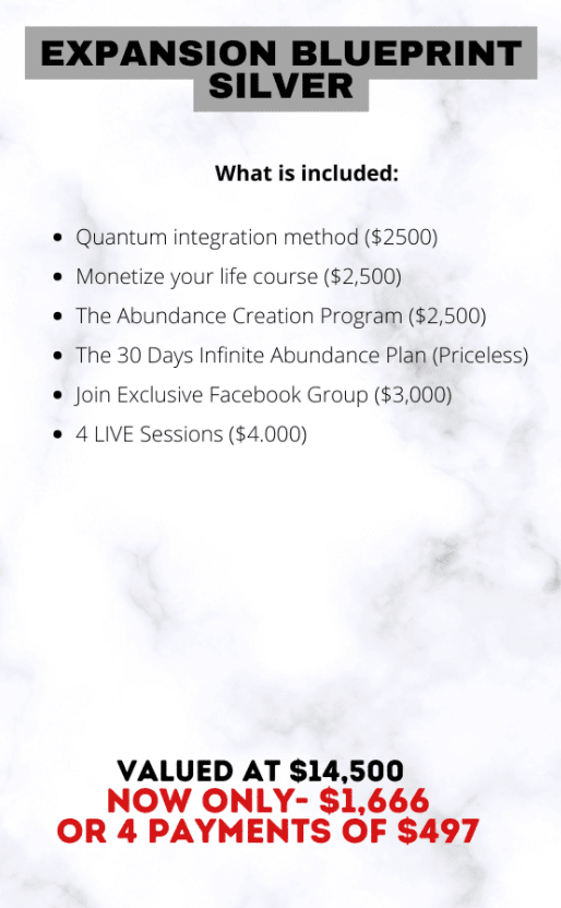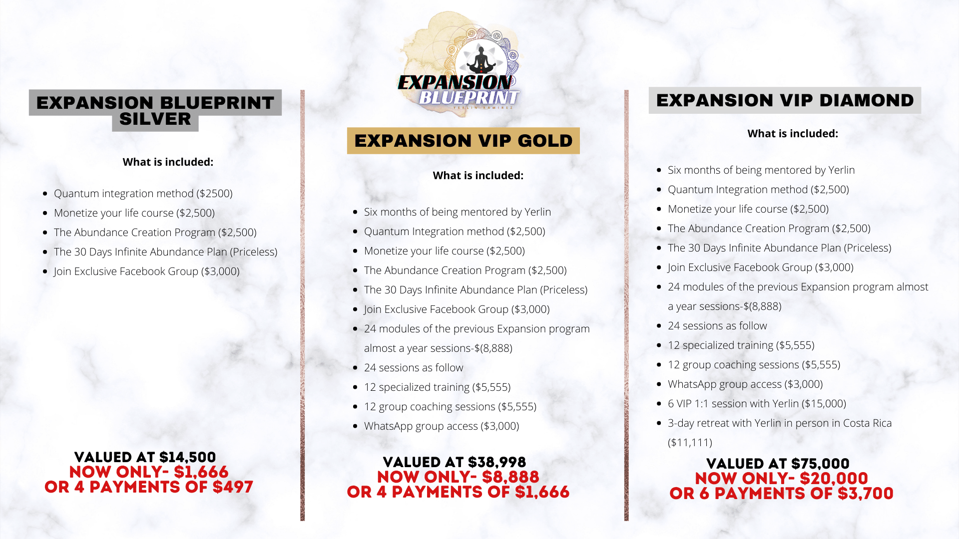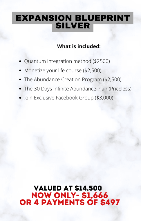 The Expansion Blueprint is the result of my life learning in which I’ve invested almost $1,000,000 in education in learning from the best teachers, trainers, healers, shamans, gurus and coaches to show you the best tools available.