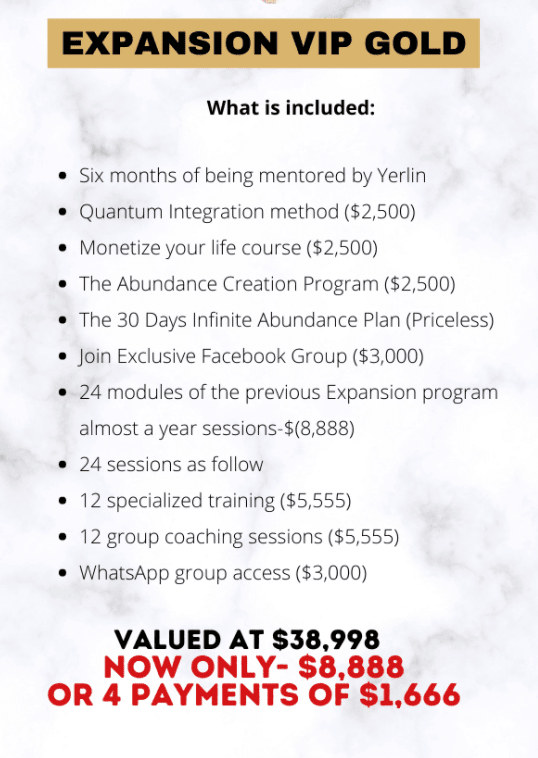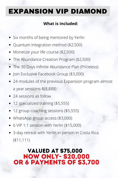 With Monetize your life (Valued at $2,500) you will learn to create a business from zero if you don't have one or to create exponential results for yours if you are actually a business owner,